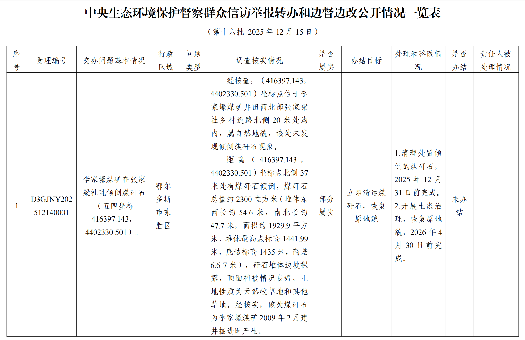 中央生态环境保护督察群众信访举报转办和边督边改公开情况一览表(第十六批 2025年12月15日)