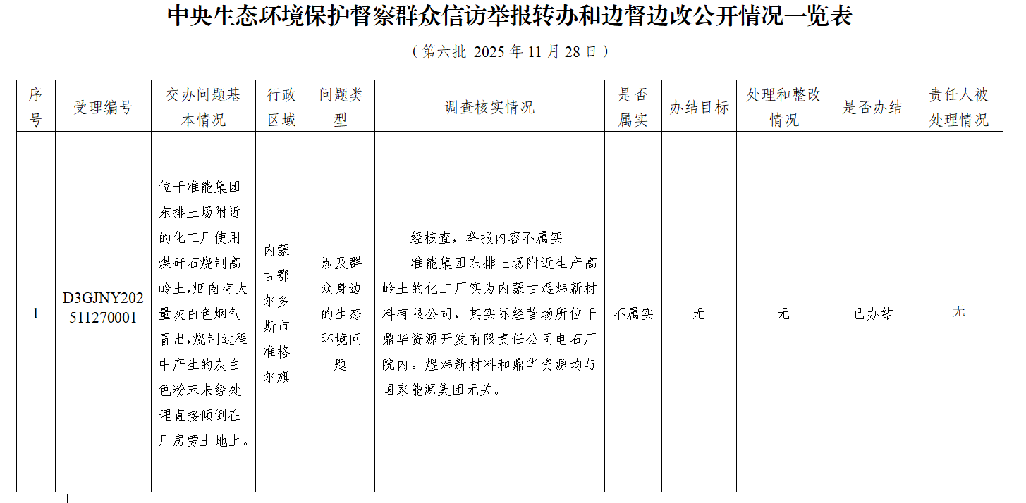 中央生态环境保护督察群众信访举报转办和边督边改公开情况一览表(第六批 2025年11月28日)