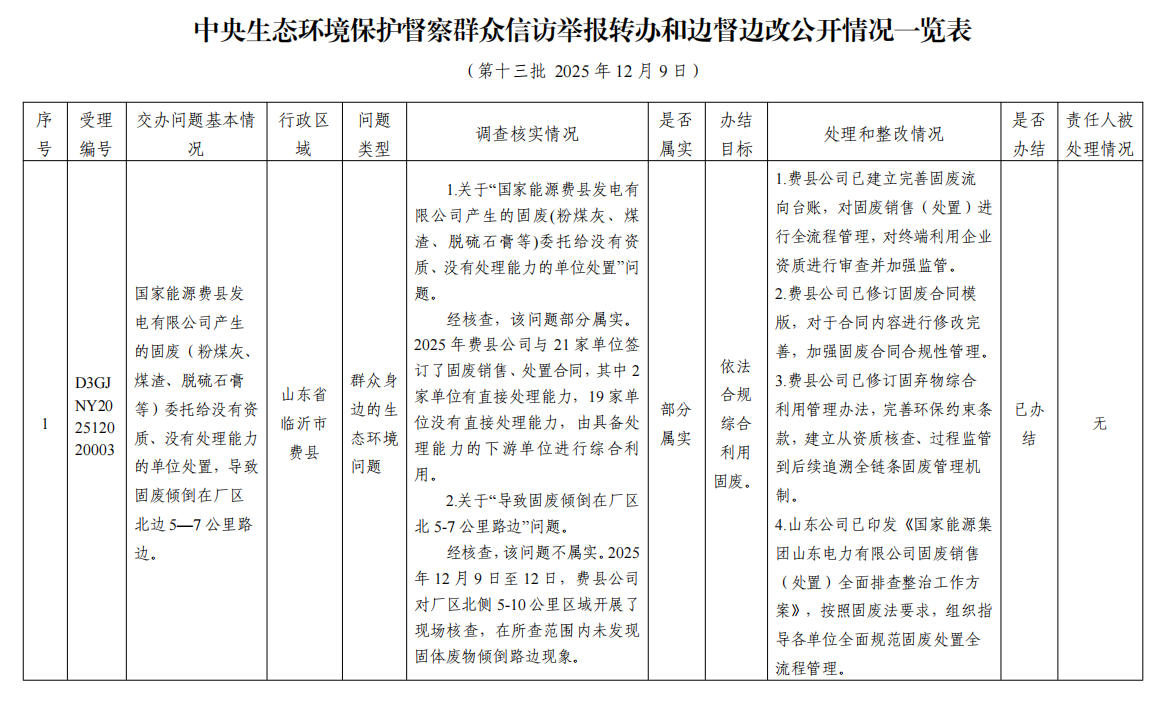 中央生态环境保护督察群众信访举报转办和边督边改公开情况一览表(第十三批 2025年12月9日)