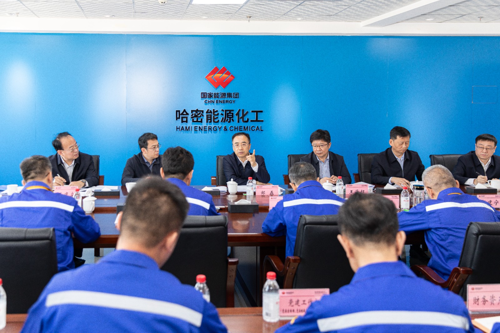 调研期间,邹磊参加现场办公会,听取哈密化工工作汇报,详细了解项目进展、科技创新、安全质量及人员配备等情况。邹磊对项目团队在戈壁荒滩上从零起步、攻坚克难取得的阶段性成果给予肯定。他指出,哈密能源集成创新基地项目建设是集团公司落实伟德国际betvlctor1946资源安全战略、推动煤炭清洁高效利用的战略工程,责任重大、使命光荣。