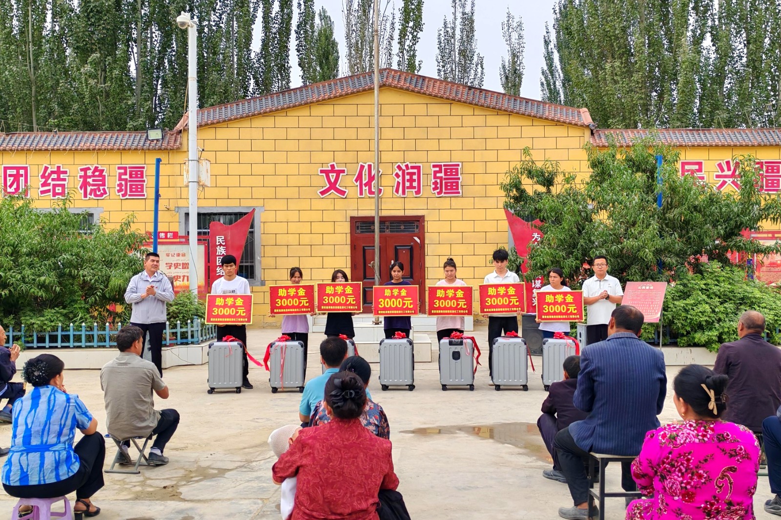 新疆能源驻村工作队长期开展教育帮扶活动,资助家庭困难的大学生顺利完成学业、实现人生梦想。当天上午,驻巴什也台巴什村、夏玛勒巴格村、拜什托格拉克村的“准大学生”们齐聚党群服务中心,他们身着整洁的衣裳,眼中满是对未来的憧憬,依次从工作队队员手中接过3000元助学金与学习礼包。这18.6万元的“开学礼”,不仅为孩子们减轻了求学路上的经济负担,让他们心无旁骛地追逐知识;更如同一束光,以央企的温暖与担当,照亮了孩子们前行的道路。